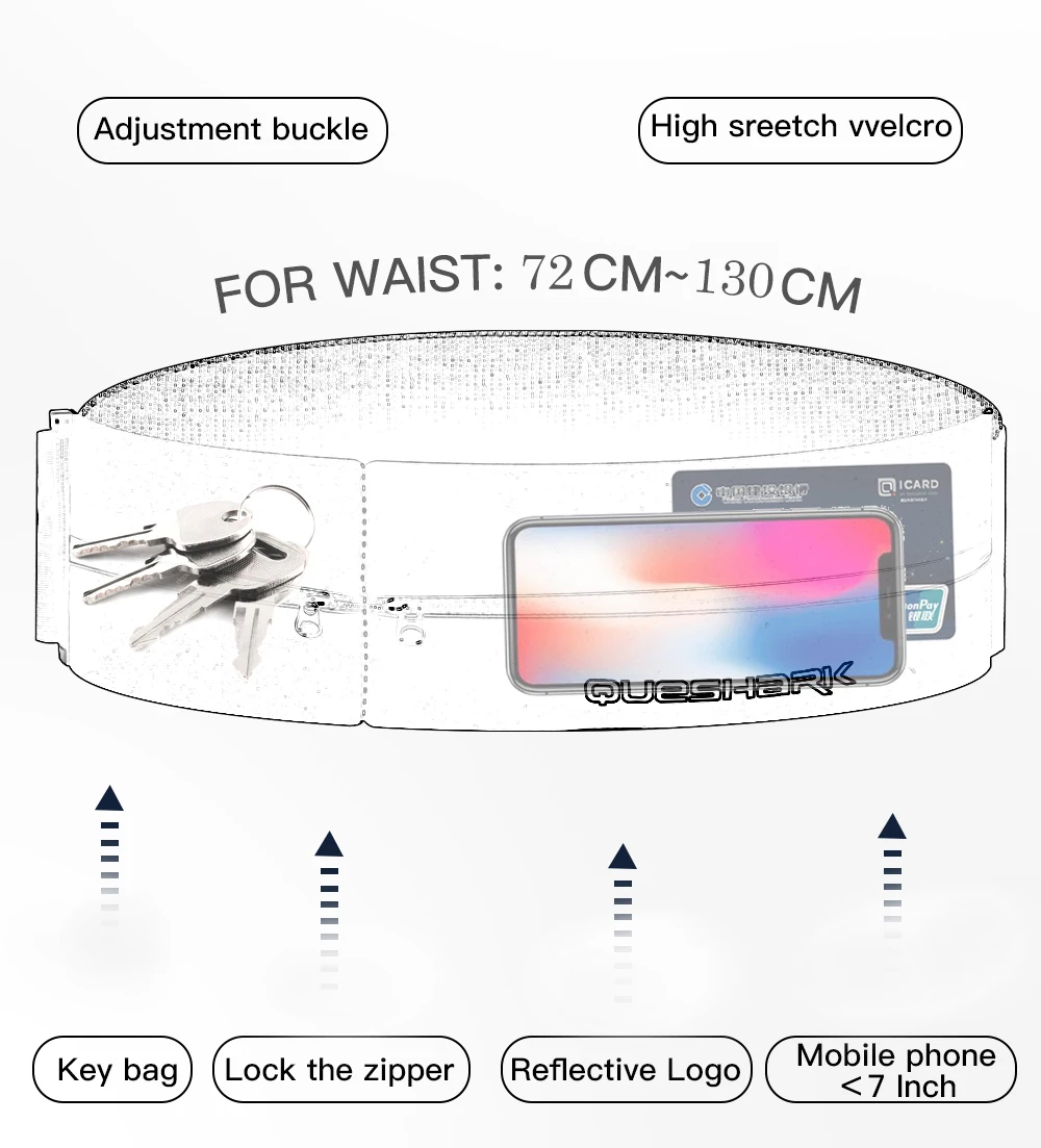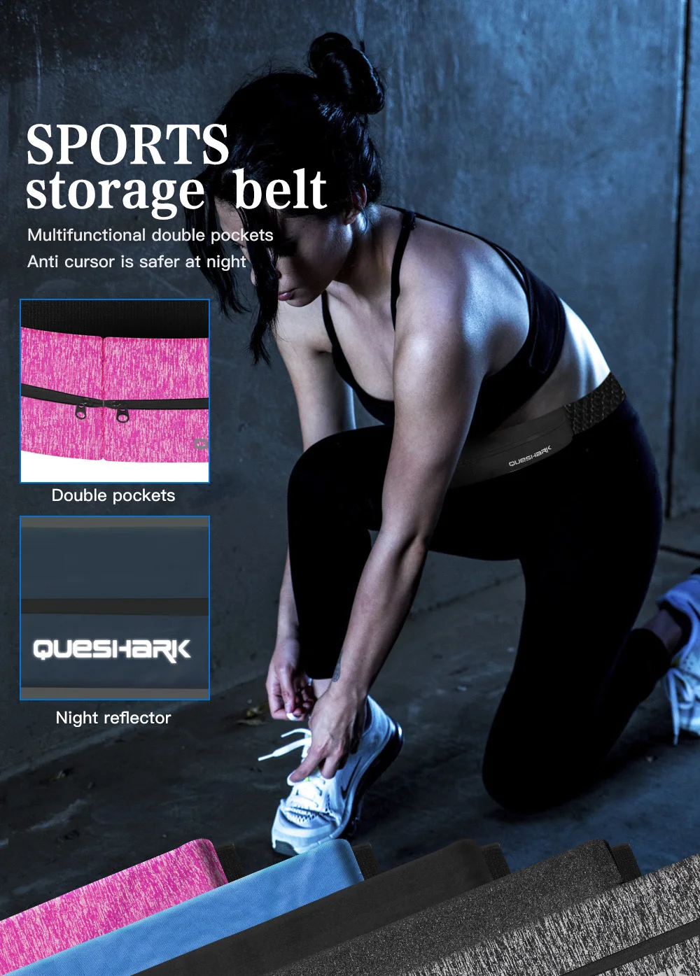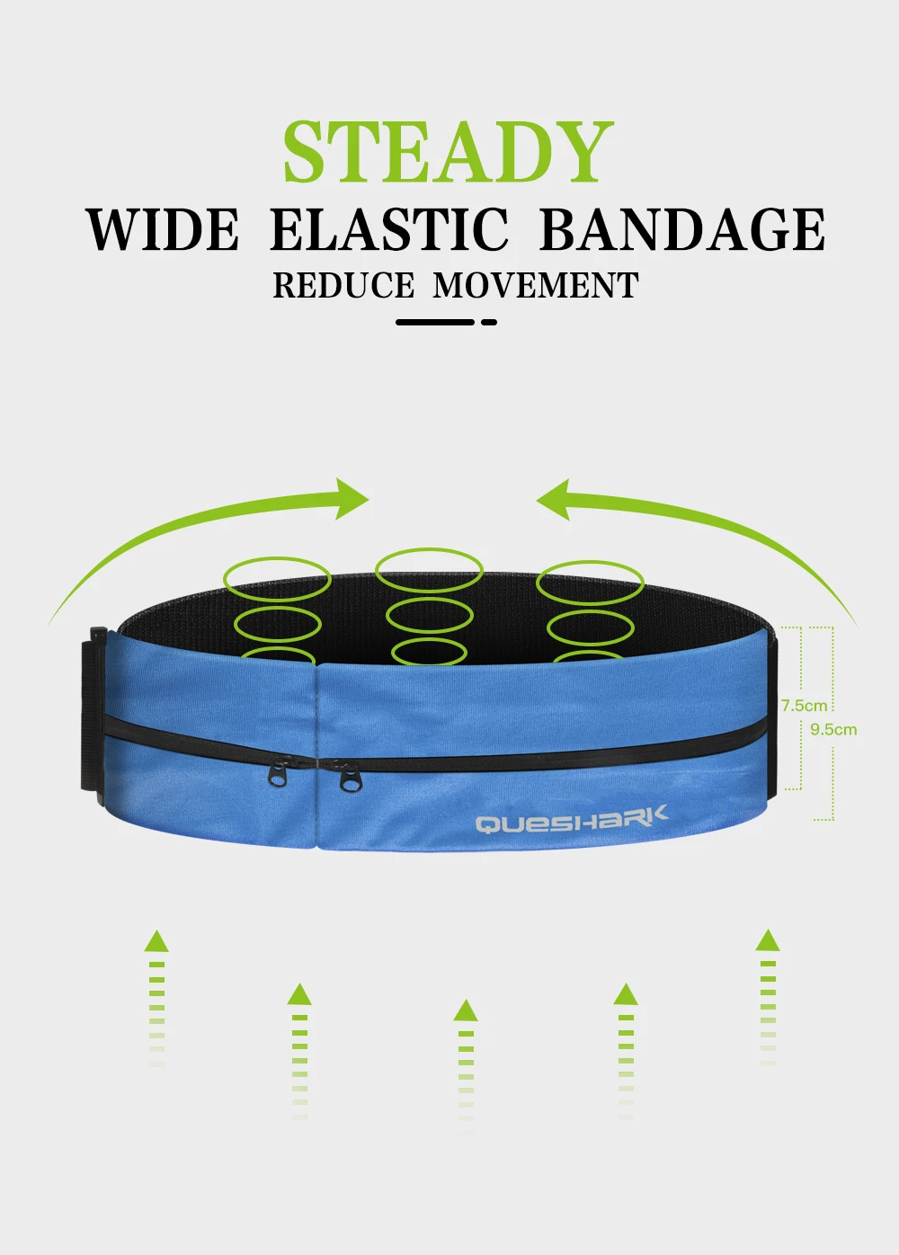 Trail Running Waist Belt Bag Gym Fitness Fanny Pack Elastic Waistband Double Zipper Pocket Racing Bag Sport Phone Case Bag