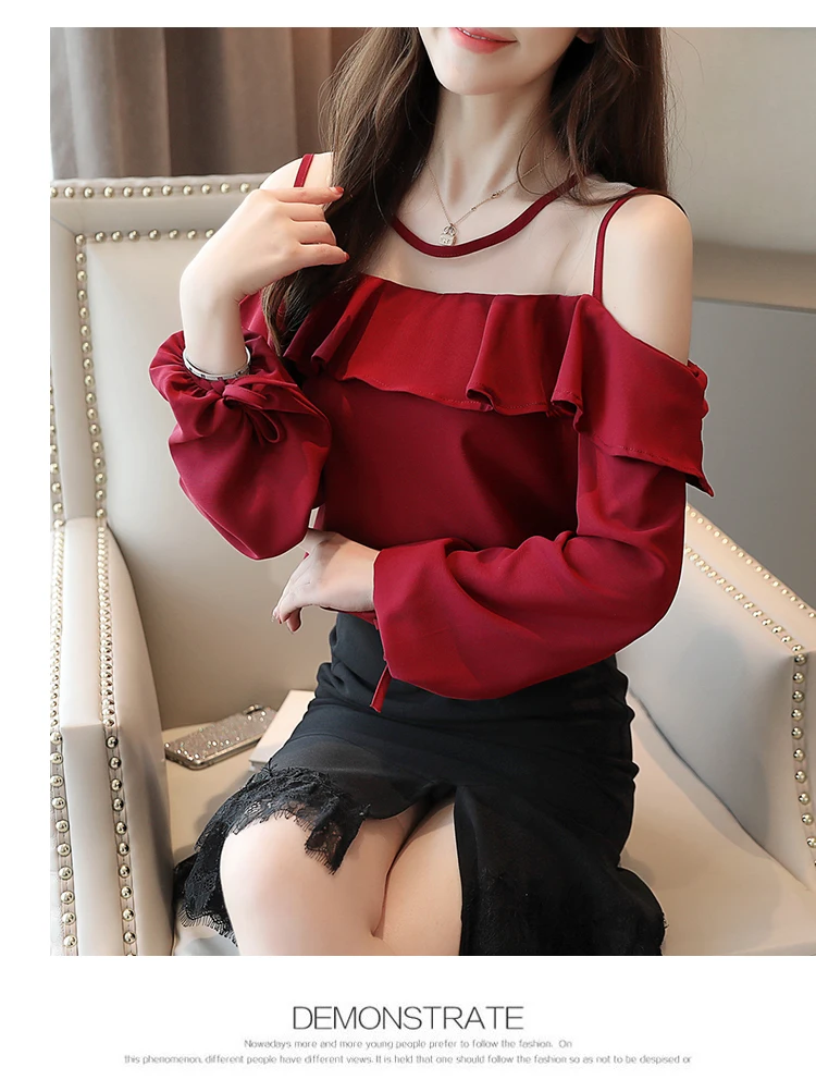Casual Off Shoulder Tops Solid Long Sleeve Chiffon Blouse Blusas Mujer De Moda 2022 Autumn Women Tops and Blouse 6756 50