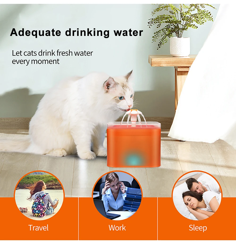 Cat Water Fountain Pet Dog Filter Drinker USB Automatic Water Dispenser LED Mute Drinking Fountain Bowl Auto Waterer For Cats