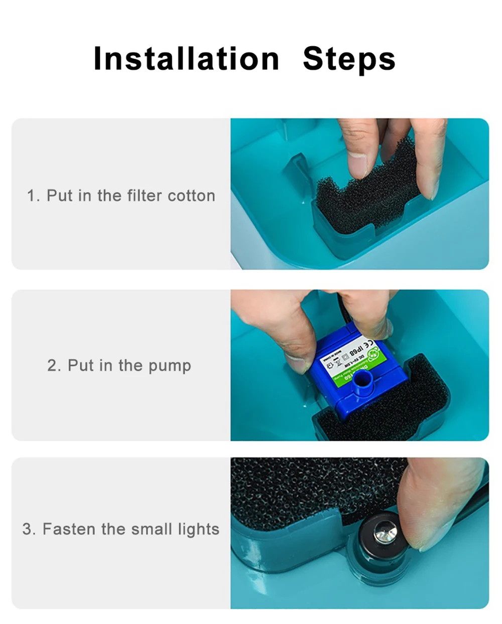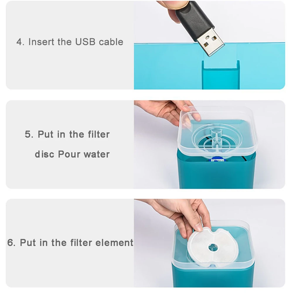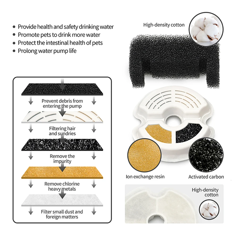 Quadruple deep filtration,Provide health and safety drinking water Promote pets to drink more water Protect the intestinal health of pets and reduce the risk of developing illness Prolong water pump life