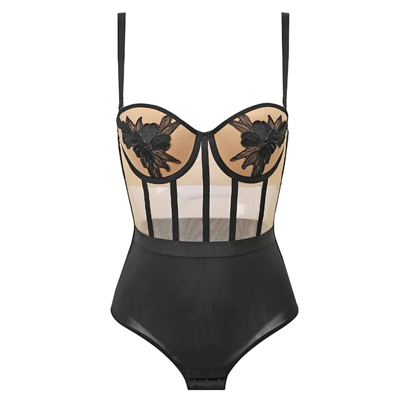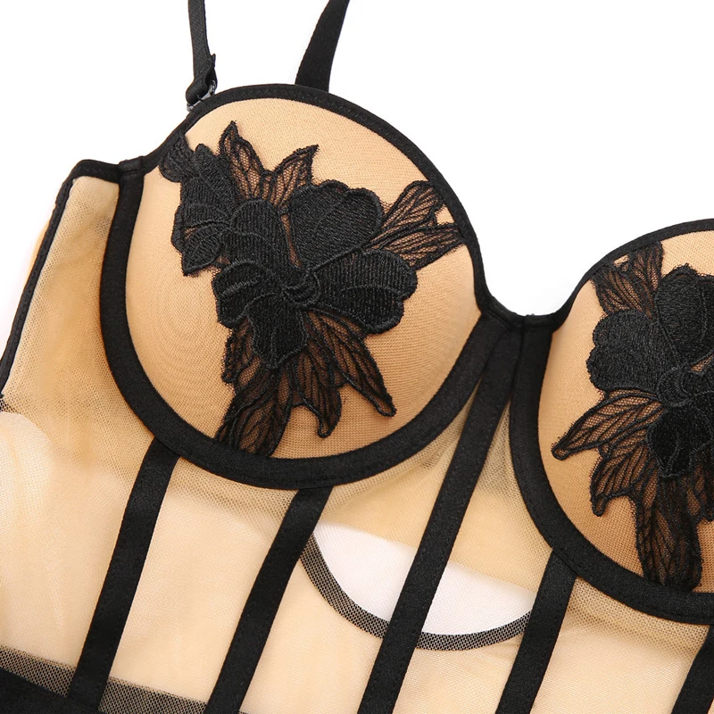 Dotey Popsy Sexy Bodysuit Underwire Gather Brassiere Appliques Pattern Decoration Sexy Lingerie For Women