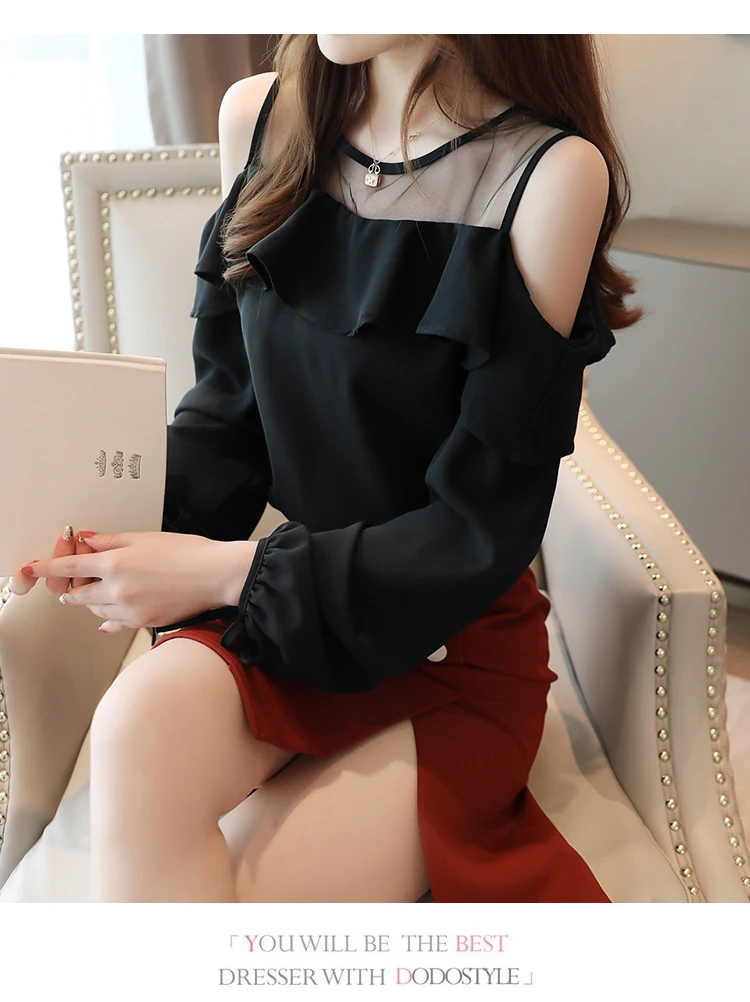Casual Off Shoulder Tops Solid Long Sleeve Chiffon Blouse Blusas Mujer De Moda 2022 Autumn Women Tops and Blouse 6756 50
