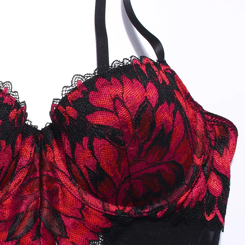Dotey Popsy Sexy Bodysuit For Women Padded Cup Push Up Floral Pattern Underwire One-piece Lingerie For Women
