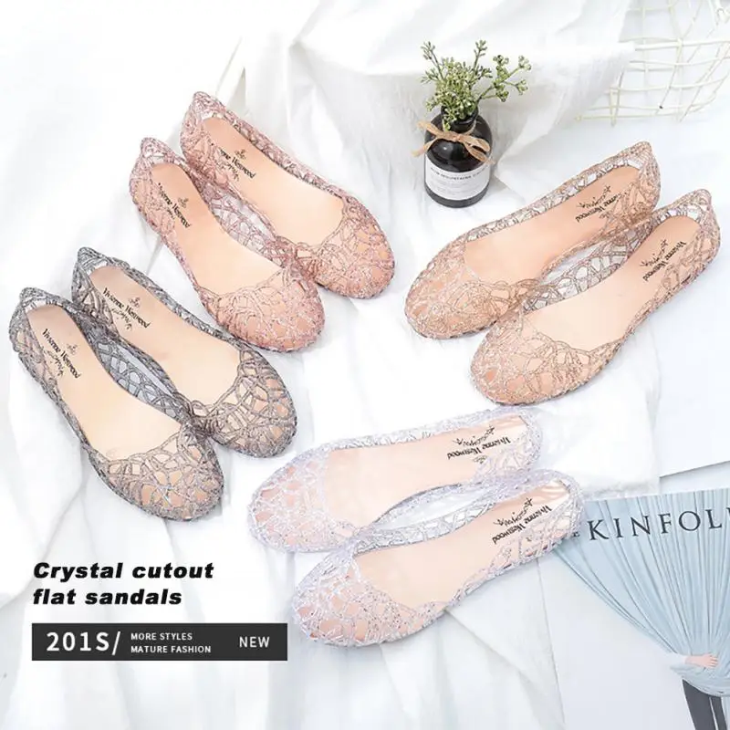 Fashion Women Sandals 2022 New Summer Hollow Crystal Sandals Slippers Transparent Crystal Jelly Shoes Woman Beach Slippers Flats