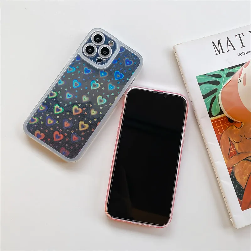 For iPhone 13 Pro Max Case Fashion Gradient Glitter Phone Case For iPhone 12 11 Pro Max XS Max XR X 7 8Plus 11 Love Heart Cover