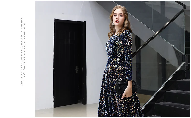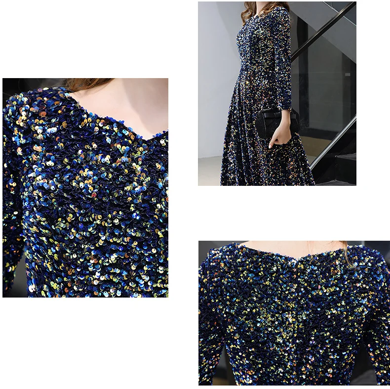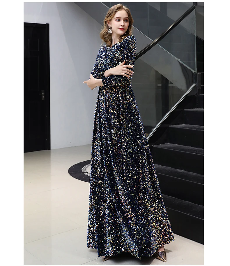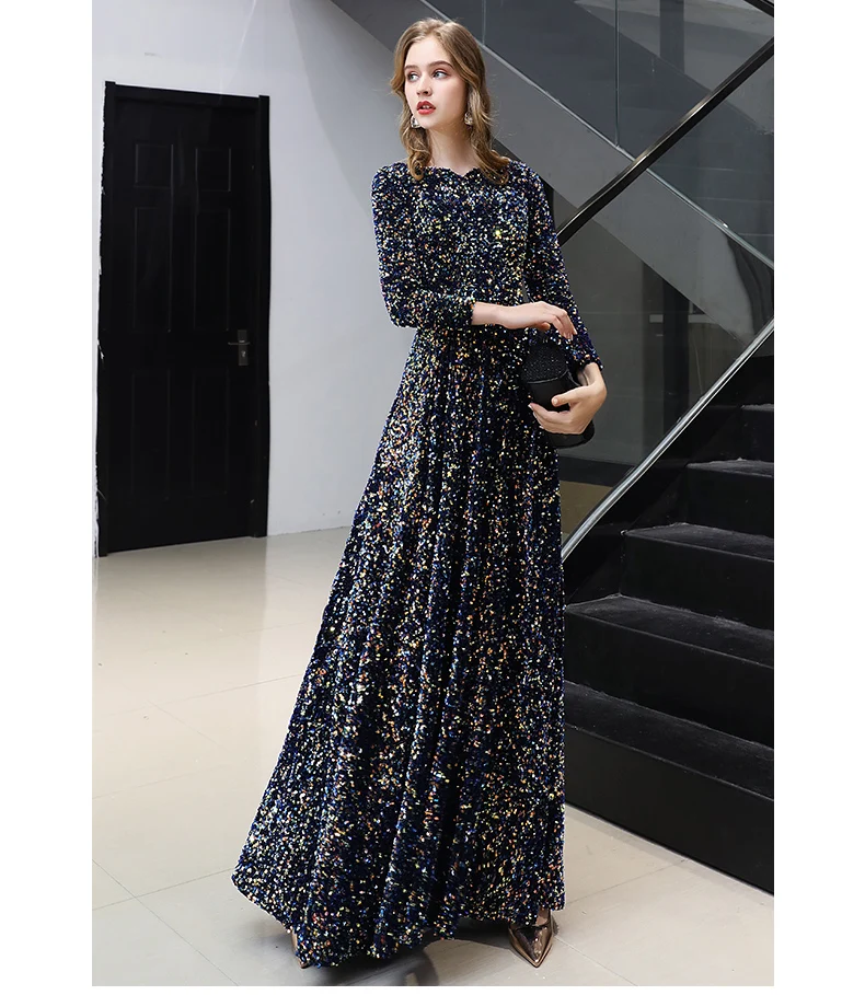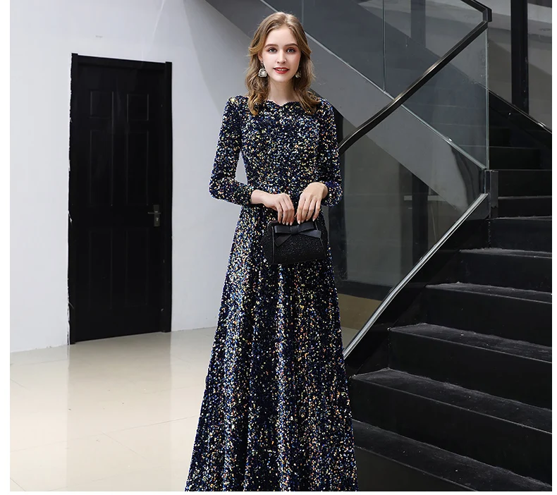 2022 Long Sleeves Prom Dresses New Elegant A-line Floor-length Sequin Women Formal Gowns Plus Size For Evening Party Dress