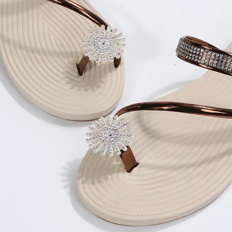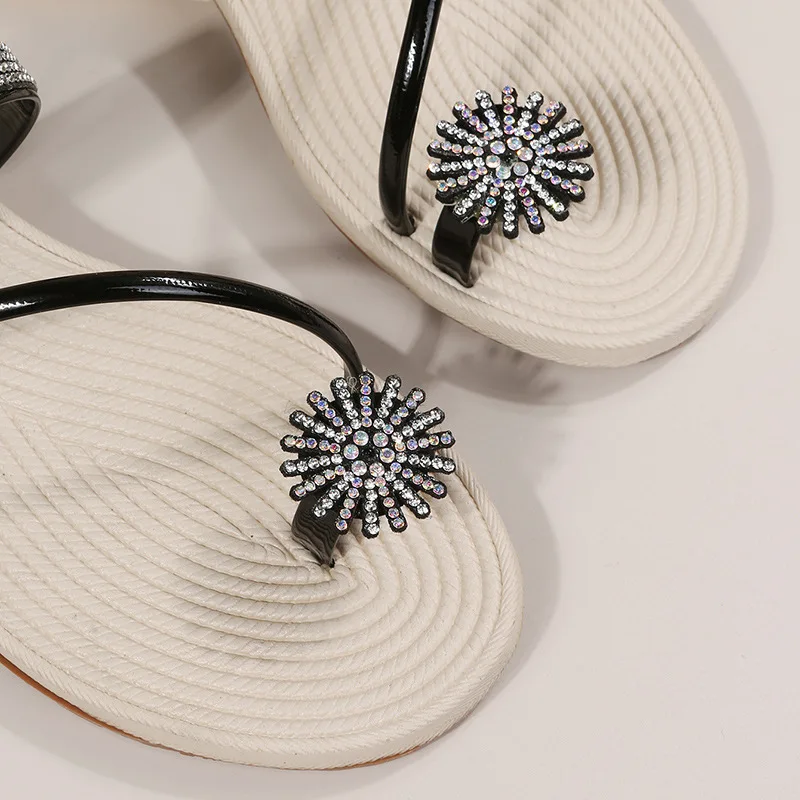 Set-Toe Sandals And Slippers Women Summer New Beach Rhinestone Luxury Flat Sandals Pantufa Feminina Sandali Donna 2022 Ete