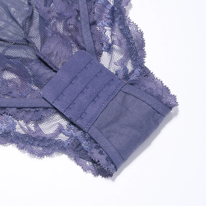 Sexy Bodysuit Women Lingerie Thin-Padded Deep V Long Triangle Cup Floral Lace Underwire Hollow Out Back Women's Underwear