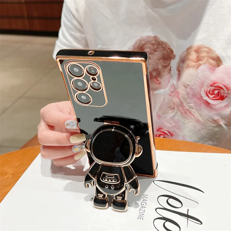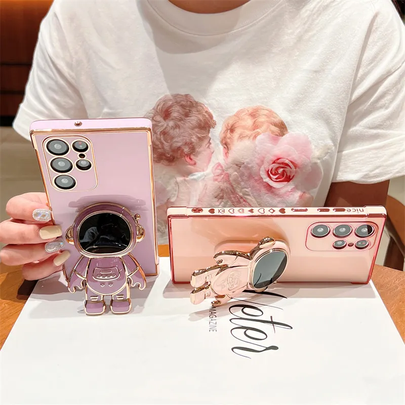 Luxury Plating Case For Samsung Galaxy S22 Ultra S21 S22 FE A52 A53 S22 S21 Plus A13 5G Love Heart Side Pattern Astronaut Cover