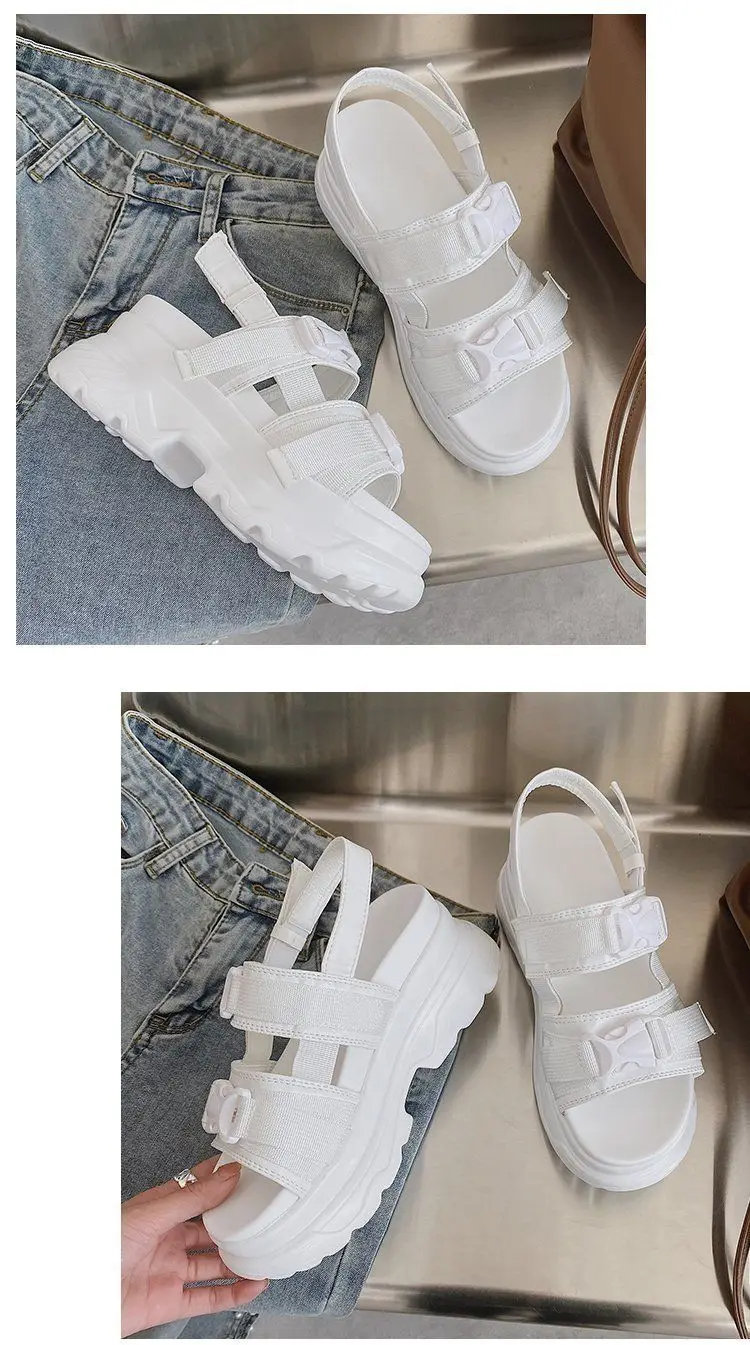 Platform Women Sandals 2022 Summer Leather Buckle Thick Bottom Letter Ladies Beach Sandal Chunky Female Shoes White Black Green